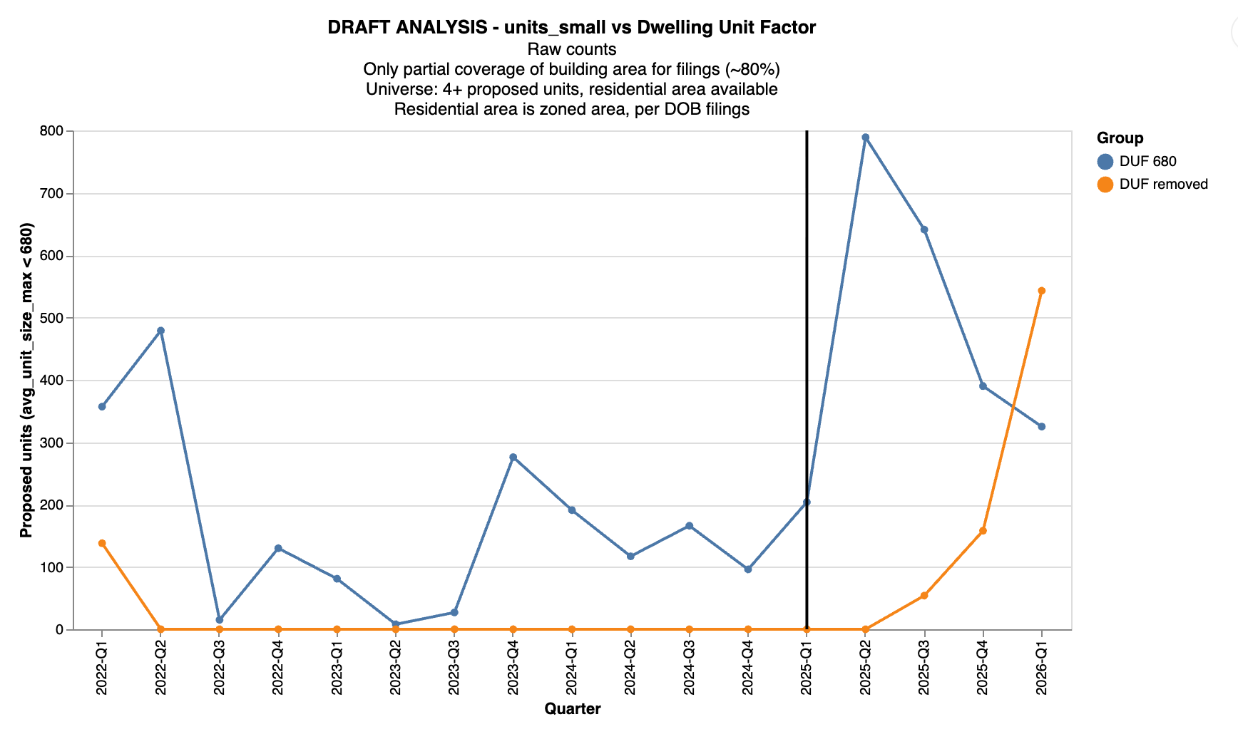 Our takeaway: It's likely that the 4 micro-unit building filings we see were enabled by COY. Without COY, they would've likely been built at 680 DUF or not built at all.